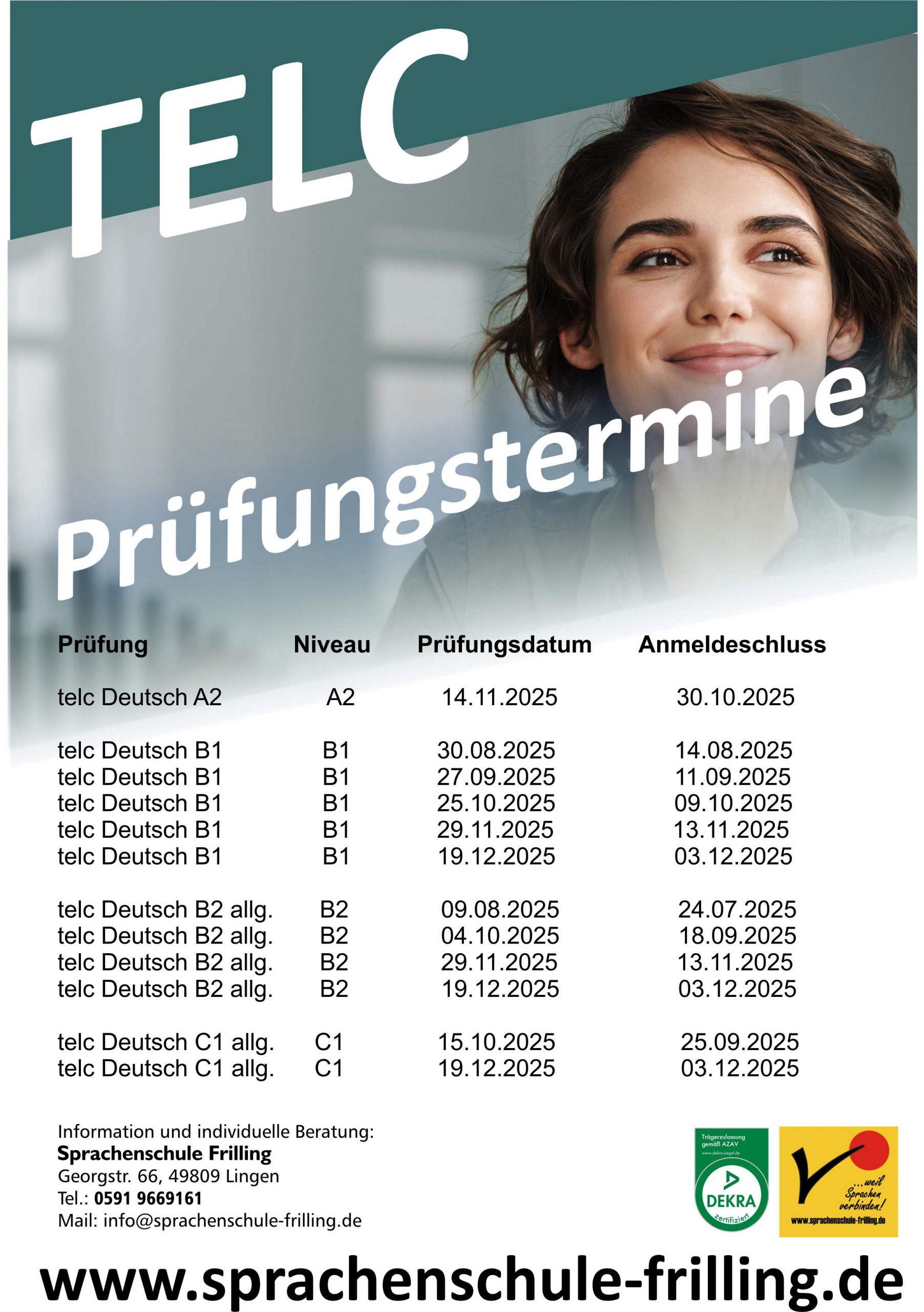 Hier erhalten Sie einen Überblick über unsere aktuellen TELC Prüfungstermine